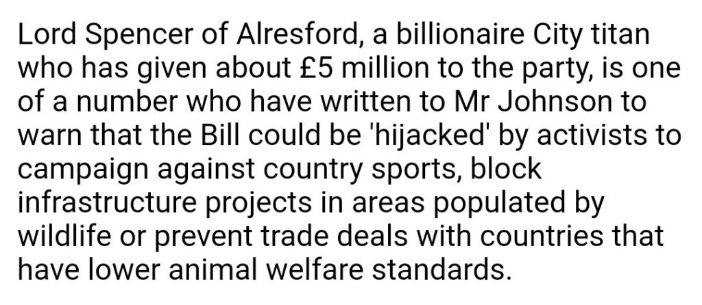 An obscure article in the Daily Mail had earlier named a man called Lord Ian Botham who is into ‘country sports’ and whom PM Boris Johnson also famous for shooting animals and having ‘semi sexual relations’ with horses, recognised as a peer, as an opponent of Animal Sentience Bill and an obvious ally of billionaires farming cartels. A snapshot of the third class personalities featured in the above media article is below.