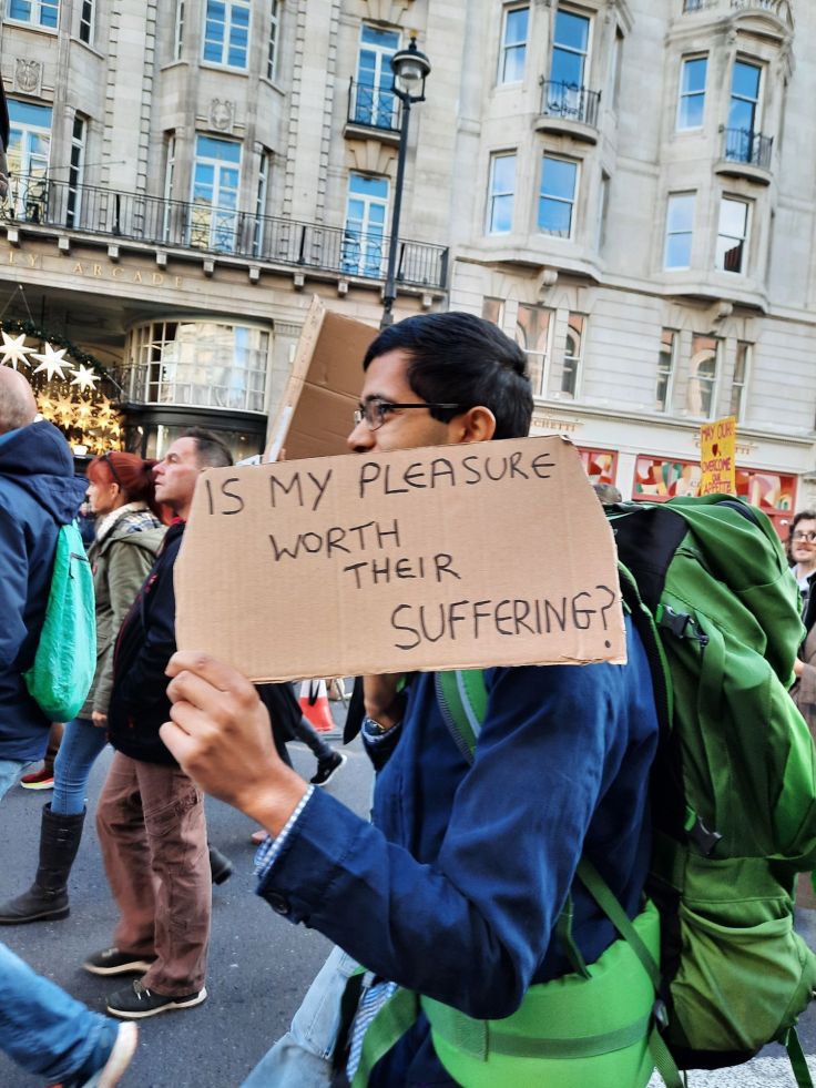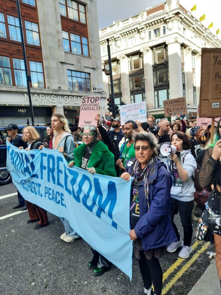 A National Animal Rights March was organised in UK on 1 November 2025 being the second one this year for Animal Rights in the UK. Veganism is about total freedom from exploitation or control of life of every individual sentient being. It is about rights to not be used or abused, because using others is equally an abuse, being an act of injustice or oppression. It is not primarily about climate change or about human physical health, but about not having victims at all, which is necessary as a part of being a reasonable and good human being of the right behaviour standards. Being vegetarian or not eating ‘meat’ (animal dead bodies) is not enough. We must all go Vegan and stop using non human animals or any animal products or services, entirely, just as we do not use human beings as slaves, objects, or our properties.